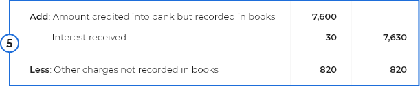 Step 6: Derive the adjusted balance. If both adjusted balances match, you're all set! Your bank reconciliation statement is ready. This tedious six-step process can be simplified with built-in BRS generation in your accounting software; it takes care of preparing your bank reconciliation format automatically.